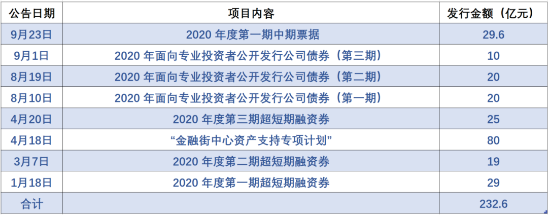这不是金融街第一次发债偿还债务。据公告,金融街2020年获注册的中期票据两个品种总额合计为93亿元。此外,为了偿还债务,金融街还曾向深交所申请发行一笔小公募债券,金额为181亿元,已于2020年5月27日获受理。