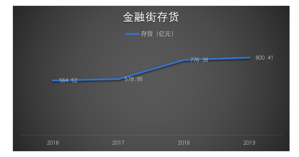金融街的存货不断上升。据2016-2019年报,金融街的存货分别为564.52亿元、578.95亿元、776.38亿元、800.41亿元。2020年上半年,金融街存货为814.07亿元,占上半年总资产的49.19%。
