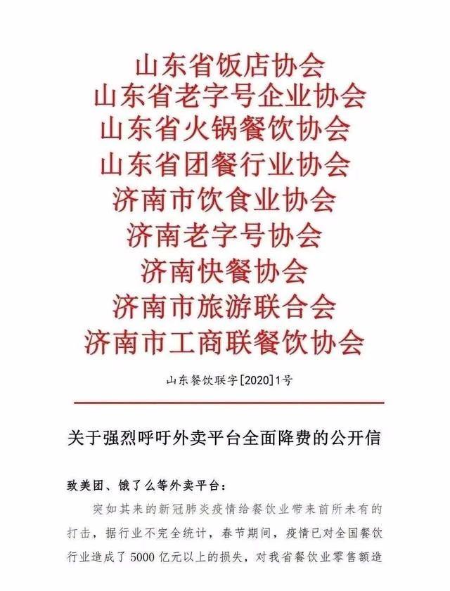 几天后,山东、河北等地数十个餐饮业协会相继发布《关于强烈呼吁外卖平台全面降费的公开信》、《致电商平台的公开信》,也开始呼吁美团外卖、饿了么等外卖平台降低外卖佣金费率等。