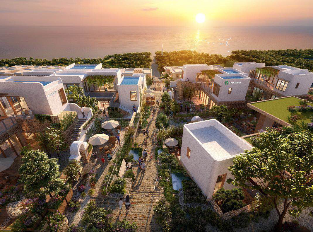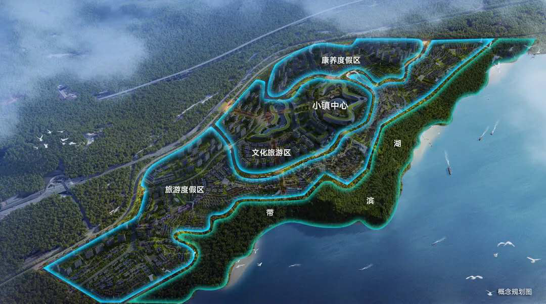 五渔邨小镇整体被规划为“一心四片”,一心即小镇中心,四片为“旅游度假区”“文化旅游区”“康养度假区”“湖滨带”。由此,一个集低碳绿色健康产业、艺术、文化于一体的国际文化艺术度假小镇呼之欲出。