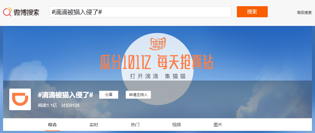 #滴滴被猫入侵了#,截至发稿前该话题的阅读量已经超过1.1亿,话题对应的是滴滴APP内的一款游戏化产品。