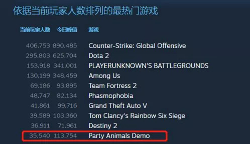 而现在《Party Animals》同样如此,借助Steam秋季版游戏节的限时免费以及游戏直播,包括国内直播平台部分主播的游玩,进行快速传播,Steam同时在线人数峰值超过11W。