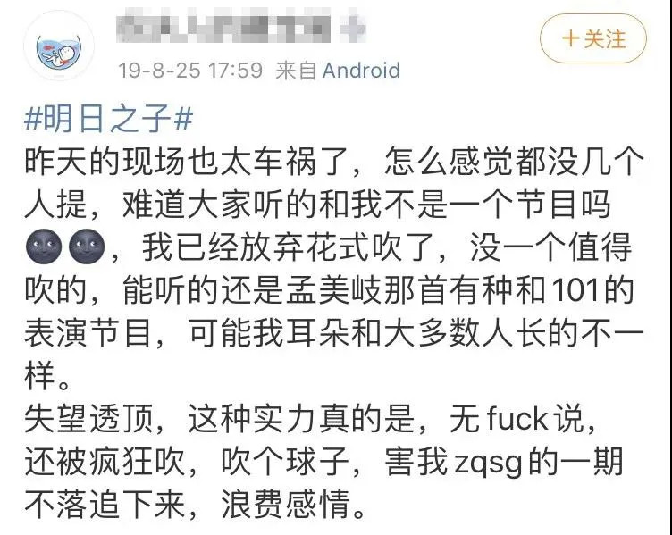 今年的天猫618晚会、818晚会、919百度好奇夜晚会上,假唱频频出现、真唱屡屡翻车的多个现场似乎可以成为今年选秀综艺演唱水平低劣的缩影。在《青春有你2》中成团的THE9,前脚刚在东方卫视苏宁818超级秀中假唱完,后脚又在百度好奇夜晚会上假唱。《明日之子乐团季》中的冠军乐队气运联盟虽然没有假唱,但跑调严重,成为微博热搜常驻话题——"难听"中的一员。