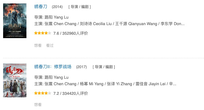 相对而言,执导《刺杀小说家》的路阳,作为年轻导演,最具代表性的作品是《绣春刀》系列,该系列获得一部分影迷认可,但是在票房市场上存在感并不强。