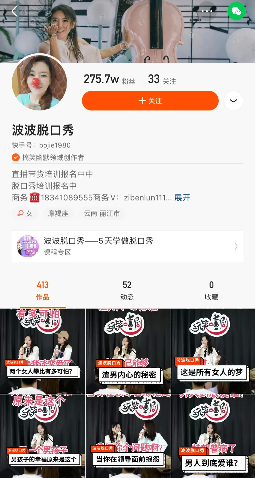 当下,快手已成为很多脱口秀从业者重视的新舞台。在这里,他们可以发布线下开放麦的精彩片段,如付航的#英文自我介绍#、Norah的#把失败变成调侃#、波波的#自拍潜规则解密#等,其中不少播放量都在百万级;在这里,他们可以寻找认同,曾被李诞评价“表演具有压迫感”的Norah,在快手收获了粉丝的理解与支持;在这里,他们也可以发展自己的脱口秀事业,在快手已有275万粉丝的波波,如今便开通了脱口秀快手课堂。