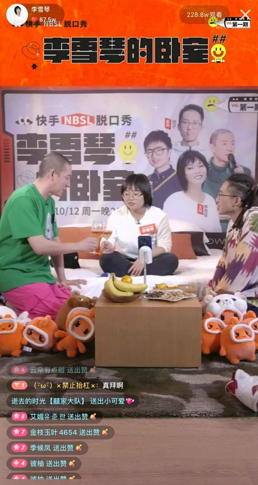 10月12日,快手推出的喜剧直播秀节目《NBSL脱口秀》第一期中,李雪琴作为主咖登场,熟悉的开场白,恰到好处的幽默,只不过舞台从《脱口秀大会》变成了快手直播间。