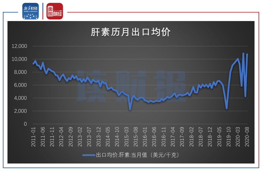 查阅历年财报发现,公司标准肝素原料销售量从2017年的35873.90亿单位上升至2019年的41612.97亿单位。根据同花顺iFinD数据,我国肝素出口均价在2015年见底后整体处于持续上升趋势。