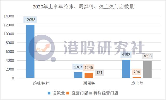 此外,煌上煌的扩张速度值得行业内的玩家警惕。上半年,在卤味三巨头中,也只有煌上煌仍然保持了营收和净利润的同比增长,其扩店速度也已经超出了公司预期。上半年,煌上煌新开门店 617家,受疫情影响关闭门店 171家,净增门店达446家,截至2020年6月底,其拥有4152家专卖店,已形成了覆盖全国26个省、自治区和直辖市的直营和加盟连锁销售网络。