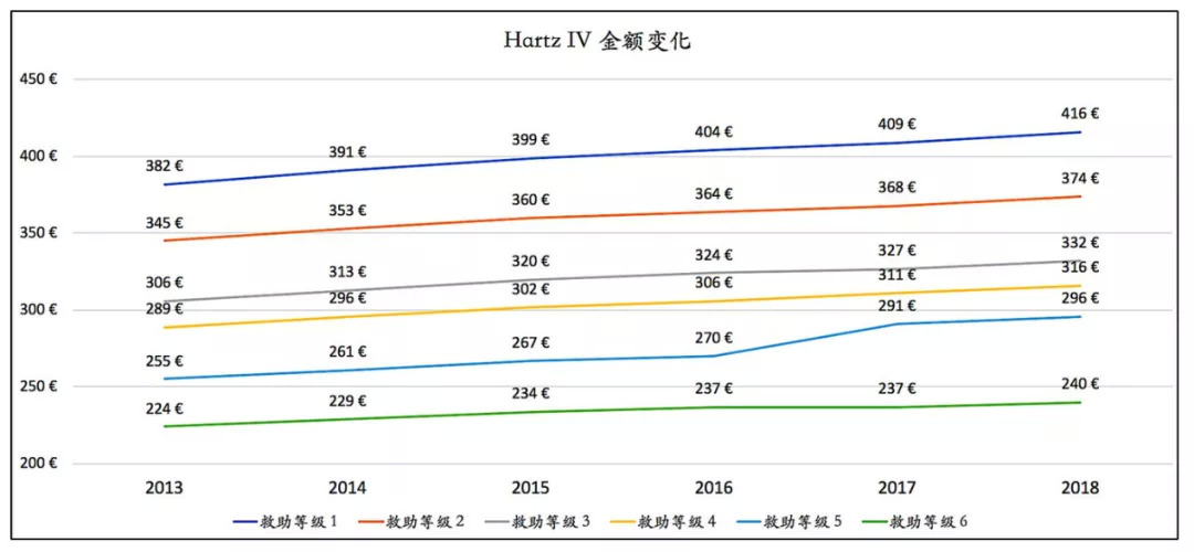 “失业金Ⅱ”分为六个等级,2018年第一等级是416欧元(约3312元)。每个没能在规定期找到工作的失业者,都能领取第一等级补助。