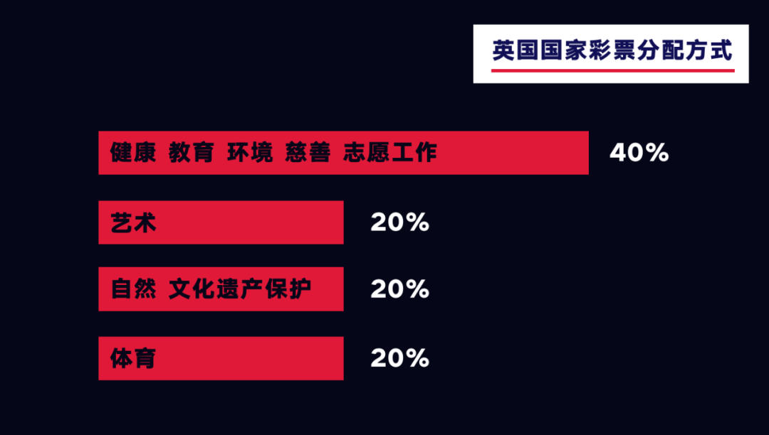 以2019年的数据为参考,国家彩票基金每年拿出16.5亿英镑将作为慈善基金对社区建设、艺术、文化传承和体育这四大板块进行资金支持。