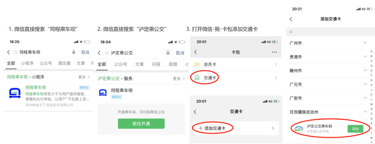 用户可通过微信直接搜索“同程乘车呗”或“泸定乘公交”,或从“微信-我-卡包-交通卡”轻松进入→添加甘孜藏族自治州“泸定公交乘车码”,乘车时只需将二维码靠近扫码机即可。泸定公交乘车码的上线,极大解决了用户在乘车场景中忘带卡、没零钱、充值不便、余额不足等困扰,为用户提供了更为高效便捷的绿色出行体验。另外,用户可在新上线期间参与乘车呗立减金活动,最高可获得8.88元公交立减金,便捷、高效、省钱出行。
