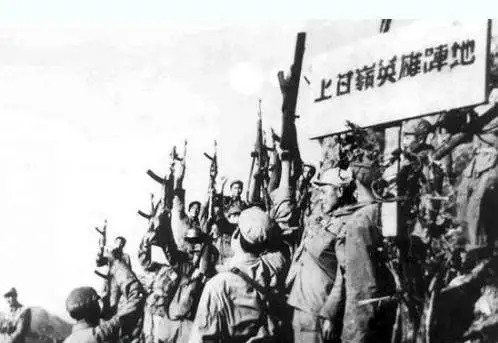 志愿军战士在上甘岭英雄阵地欢庆胜利