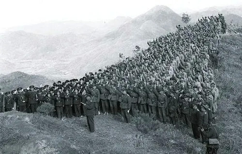 1958年志愿军撤离朝鲜前在英雄阵地上甘岭宣誓