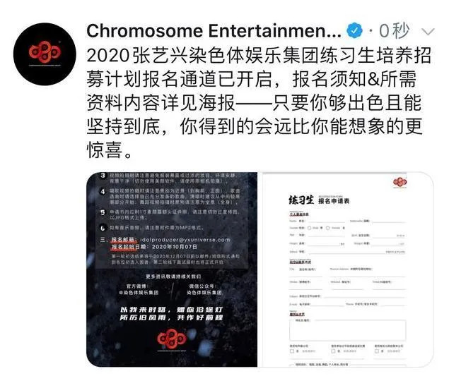腼腆少年成长为独当一面的偶像标杆后,他选择于此刻完成一次全新的角色转换:作为染色体娱乐集团的老板,官宣2020年"染色体全球练习生招募计划"。