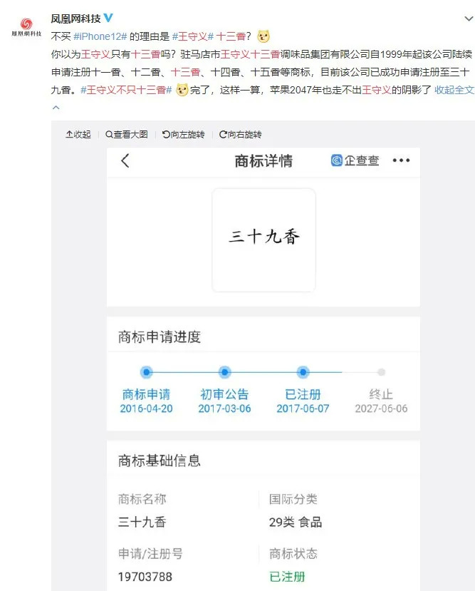 我们原本“单纯”地认为“13香”这个梗就是一次无巧不成书的蹭热点营销事件。这种无巧不成书,与腾讯公司与另外一家知名的农副食品加工公司——贵阳南明老干妈风味食品有限责任公司的乌龙广告合作事件一样,都是非常意外的。