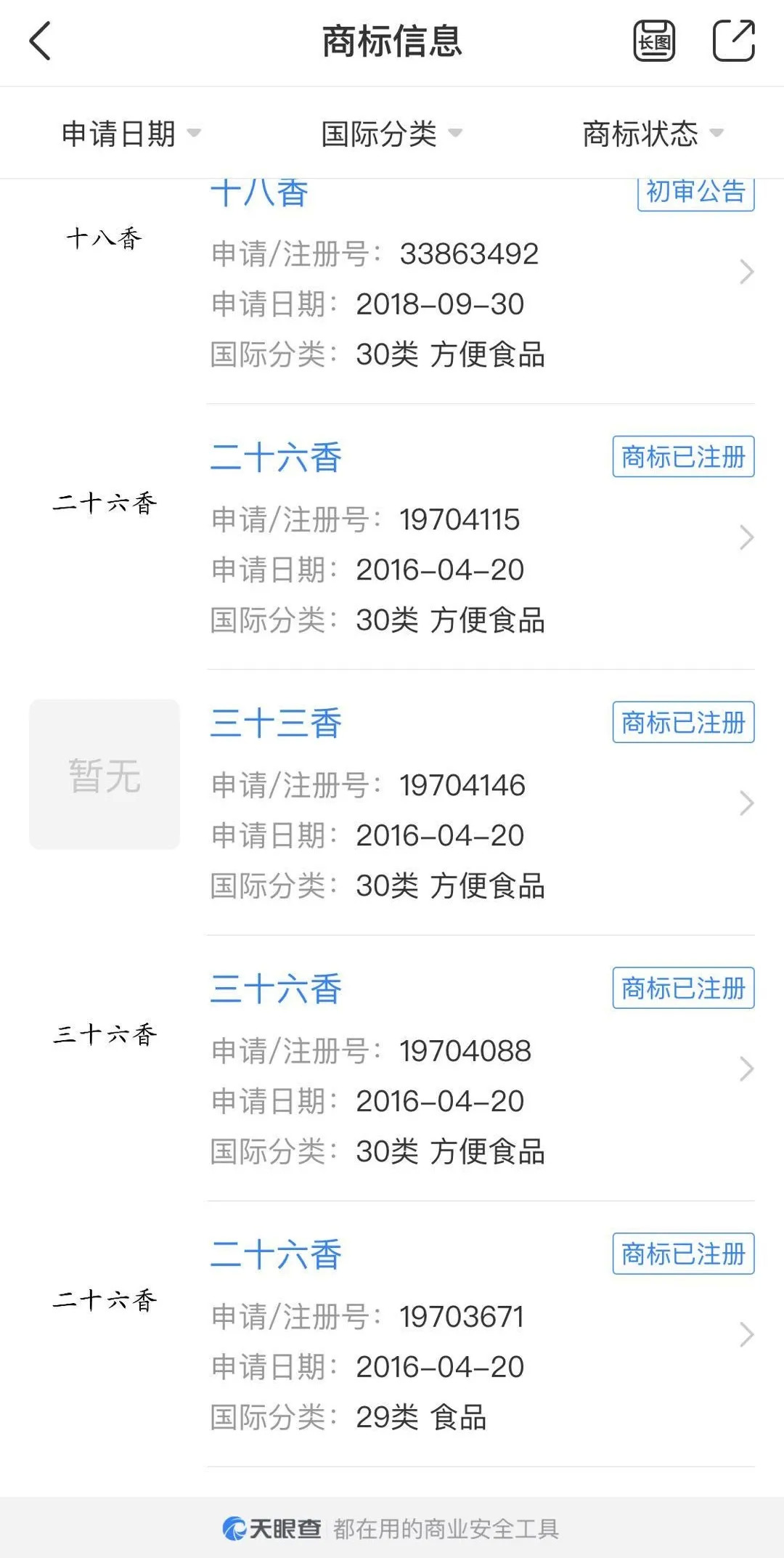 但是,这次,我们可能有点看走了眼。因为,虽然“隔壁老王”的公司叫着“王守义13香”,但是这家公司远不止“13香”那么简单。根据媒体对于“13香”热梗的进一步信息挖掘,到目前为止,我们已经可以看到“隔壁老王”手上握着的已经到了“39香”。