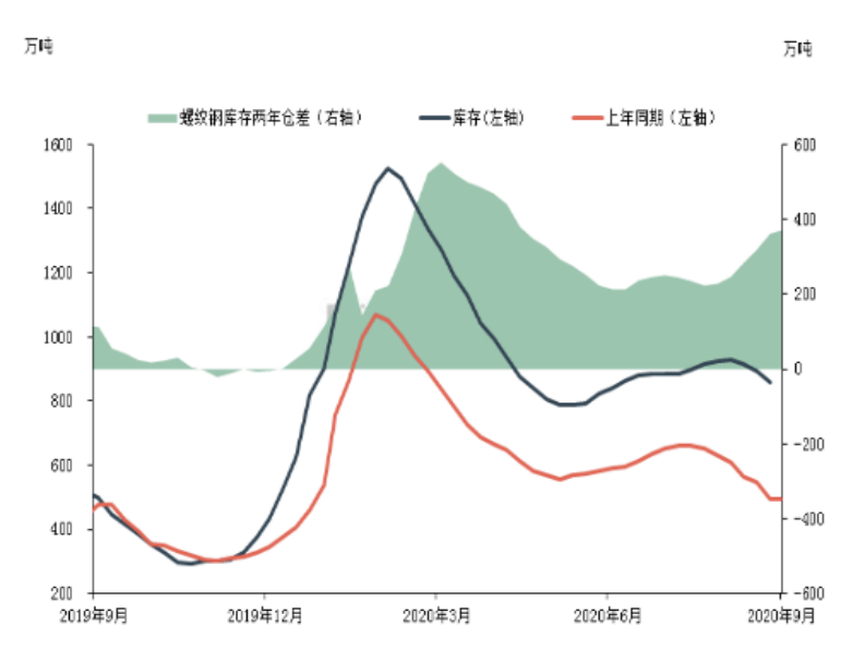 根据中国钢铁工业协会最新统计的钢企库存情况,9月中旬至下旬钢企库存明显下降,但10月上旬再度反弹。卓创资讯监控的螺纹钢社会库存(注:即贸易商库存)显示,前三季度库存始终高于去年同期水平。