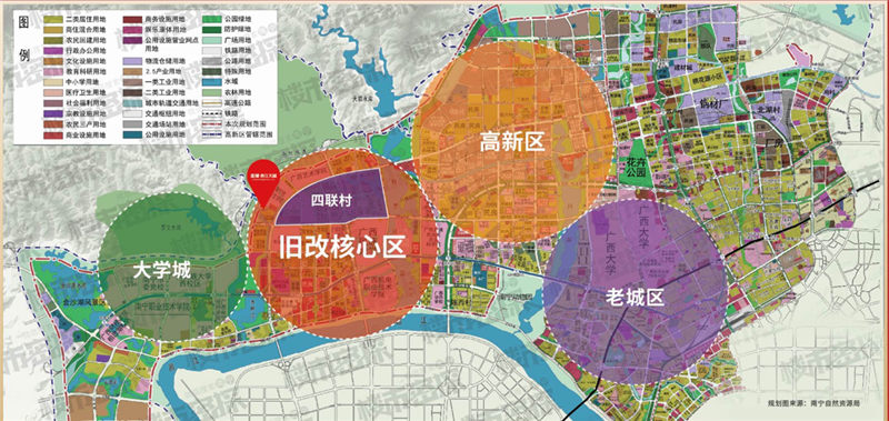 在南宁“西建东扩重点向南”的大方针之下,那安快速以西已几乎无地可开发,西乡塘的拓展出路只有一个——罗文板块,而此次四联村旧改,正是西进的突破口。