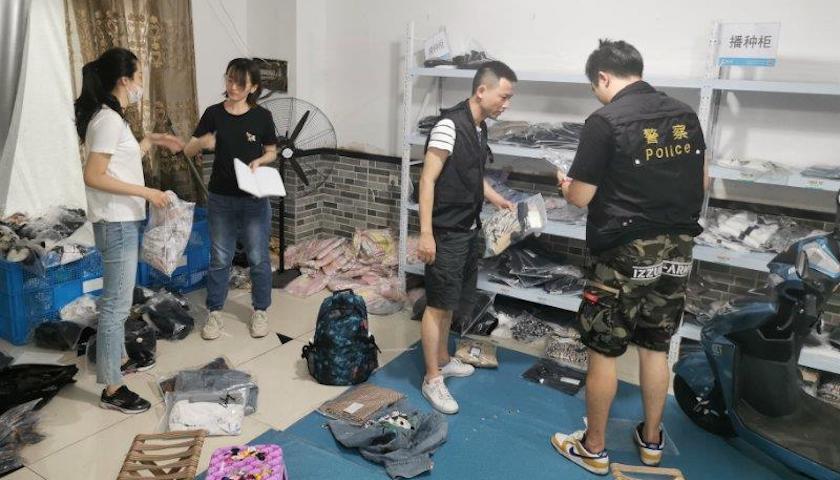 这不是直播间的特殊表演,而是一场实实在在的抓捕行动。8月28日,上海市公安局虹口分局经过2个多月的缜密侦查,成功侦破本市首例利用“网红主播直播带货”形式对外销售假冒注册商标商品案,在浙江多地抓获售假犯罪团伙5个,查处窝点8处,当场缴获假冒多个奢侈品牌的箱包、服饰等各类商品3000余件,抓获正在直播带货的廖某(女,27岁)等犯罪嫌疑人50余名,其中41人已被依法批准逮捕。
