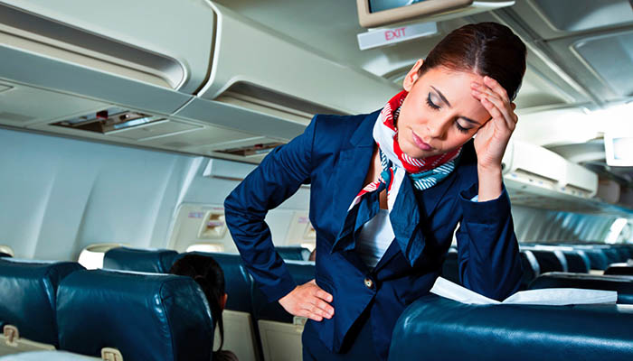 空乘人员由于高空工作,身体健康会遭受影响。在高空中大气的物理特性和高空环境对人体生理都会产生一定影响,除了会发生人体的胃肠内气体膨胀,导致肠胃腹部疼痛、呼吸困难之外,工作多年的空姐、空少普遍会出现脱发症状。