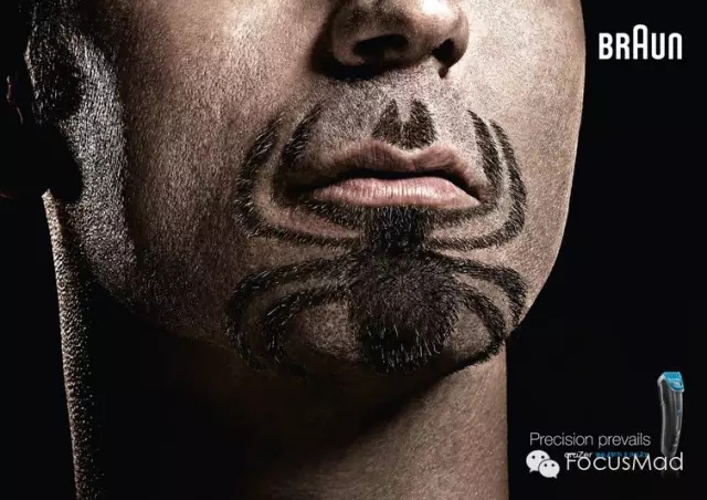 通过蝙蝠侠、蜘蛛侠、超人来召唤男人们心中的英雄梦。而这些夸张的创意更说明了剃须刀的灵巧、锋利。虽然上面的图案很难刮出来,但你拿个又钝又生锈的刀片试试?