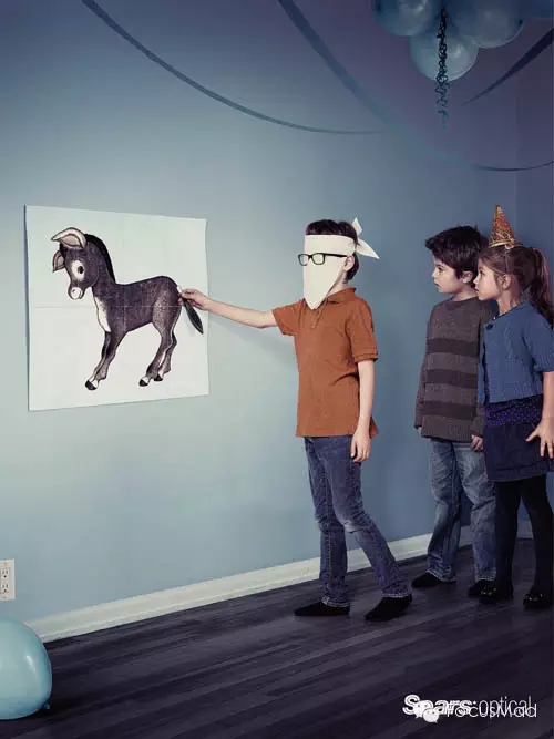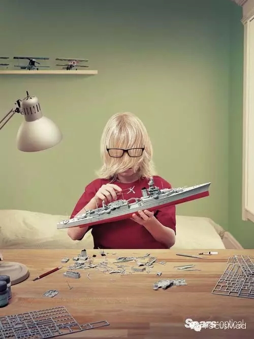 贴尾巴、组装航模、人脸手绘本来就是逼死人的节奏,而广告中人物却都蒙上了眼睛。但是,这可是Sear眼镜。好眼镜、不怕挡,so easy!