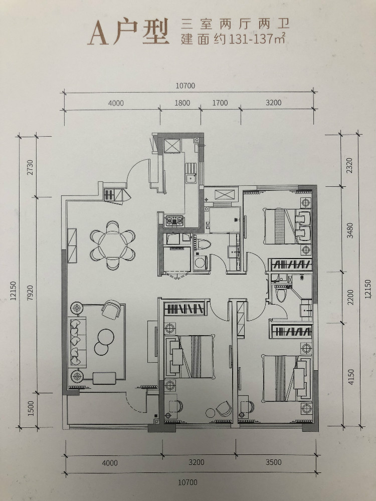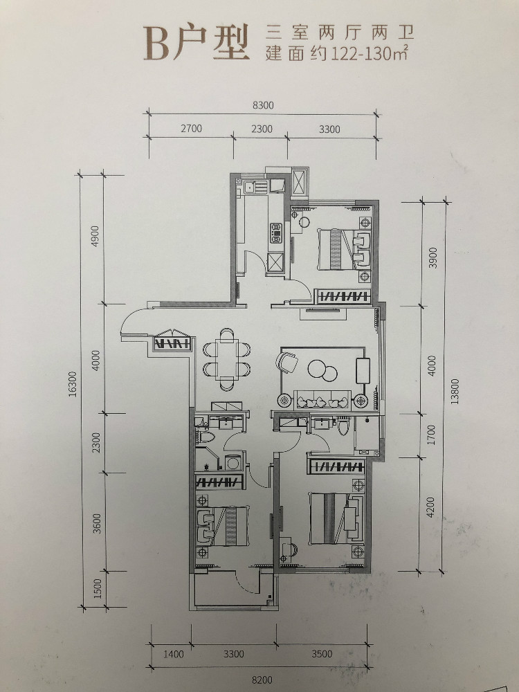 项目目前的主力户型仅有两种,分别为A户型,三室两厅两卫,建面约131-137平;B户型,三室两厅两卫,建面约122-130平。整体户型种类较少。而且从户型图上看,设计比较老旧,布局没有新意,其中A户型虽然面积较大,但三间卧室合围处形成的走廊空间明显浪费;而B户型主卧与老人房之间南北不通透,而且老人房与卫生间之间的动线也略显曲折。