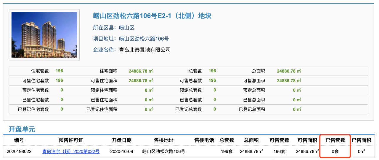 相较于今年浮山后楼市整体居高不下的热度,紫樾尚府不仅自己项目低调的离谱,整体销售情况也十分不乐观。截至发稿(10月15日),据青岛网上房地产数据,拿到预售证近一周时间后,网签房源数量却仍为0套。