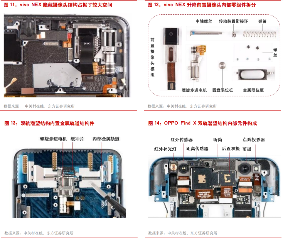 18年6月份OV分别发布的OPPO Find X和vivo NEX,第一次展示创新型隐藏式前置摄像头技术,其中vivo NEX采用升降式隐藏前置摄像头,而OPPO Find X则是使用双轨潜望结构。