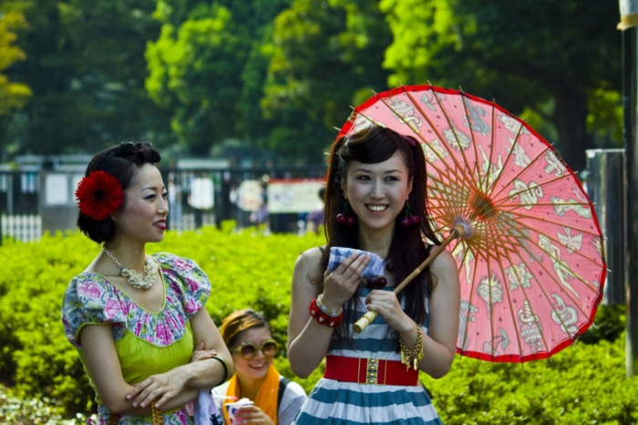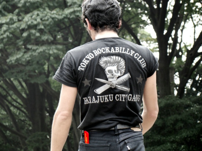 尽管人们不太会把Rockabilly这种混杂了乡村乐的摇滚形式和日本联系起来,但是在1955年,当Rock Around the Clock这首歌首次出现在日本时,它可是霸占了排行榜。当然,那时候的人没法上iTunes下载最新的单曲,也没法上维基百科查找原唱歌手的资料。所以战后日本的青少年只能通过收音机听到自己最喜欢的歌曲,或者去买唱片,看翻唱乐队的演出。日本的音乐厂牌想通过翻唱乐队赚钱,在他们的推动下,模仿美国Rockabilly风格和做派成了一种主流文化。1970年代,这股风潮复兴了一阵,而且回潮的不仅是音乐,还有对这种时尚风格的极端重塑。东京Rockabilly俱乐部很可能就是在那时成立的。