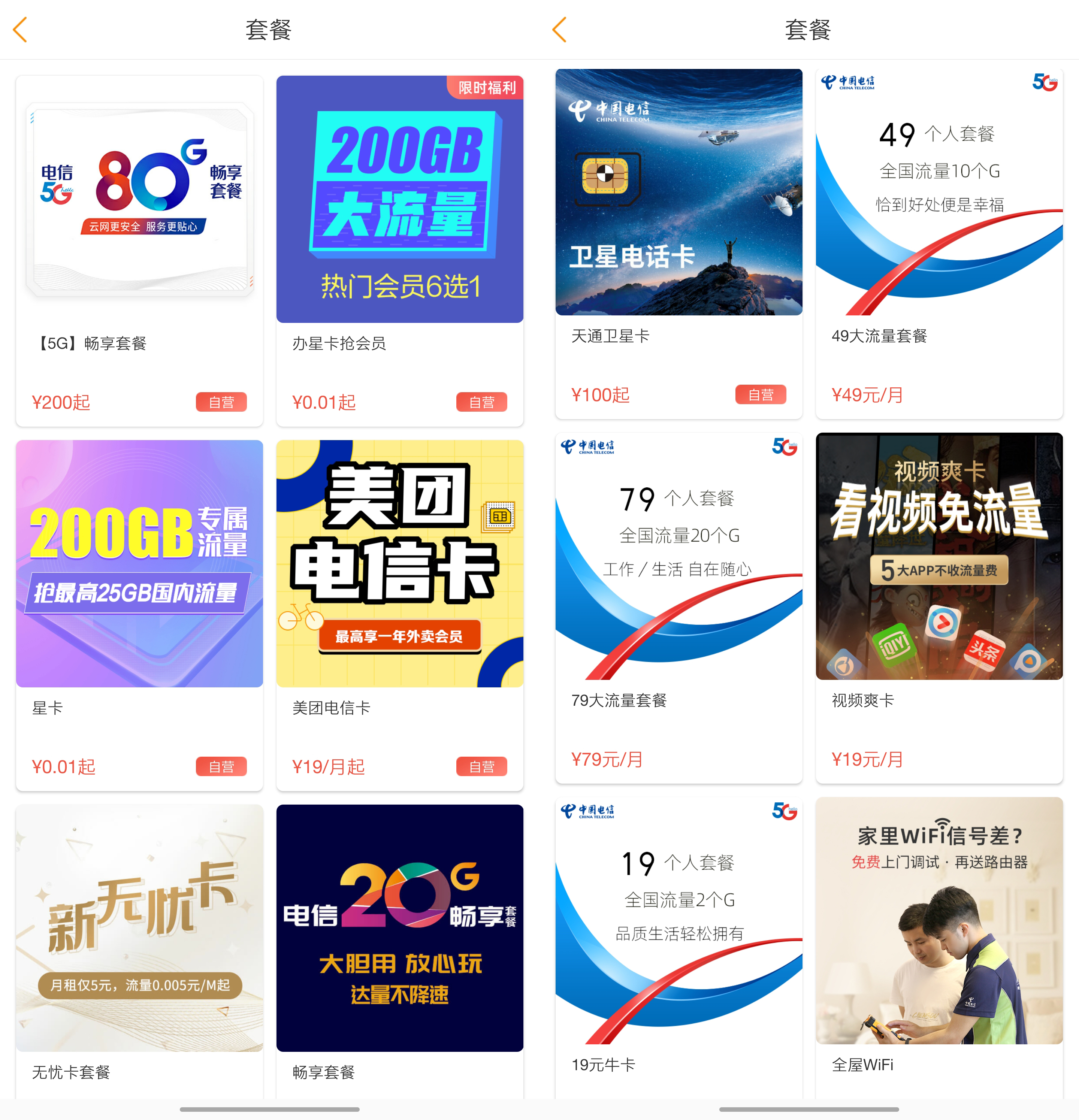 近期,三大运营商均采取了相似的“收紧4G,推广5G”策略。界面新闻记者查询四川电信网上运营厅发现,套餐办理界面仅有5G套餐与包括“星卡”在内的定向流量套餐,并没有提供传统的4G套餐办理选项。