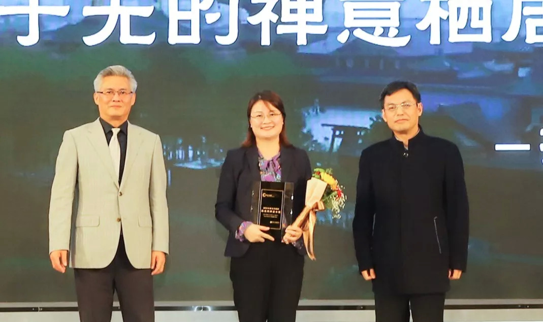 左|新日本健康产业研究院主席研究员干力行颁授拈花湾之杯