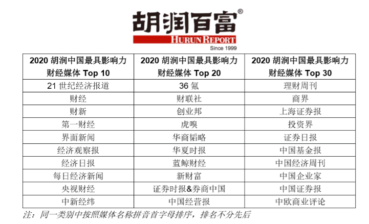 10月16日,胡润百富今日发布《2020胡润中国最具影响力财经媒体榜》。这是胡润百富连续第二次发布此榜单。胡润百富董事长兼首席调研官胡润表示:“财经媒体目前还是以图文报道为主,值得关注的是5G时代下的视频化趋势,比如抖音、快手和B站的崛起。”