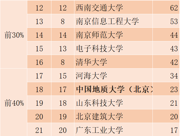 在这一学科排名中,共有17所大学上榜,中国地质大学(武汉)、中国地质大学(北京)位列前2名,紧随其后的是南京大学和北京大学。