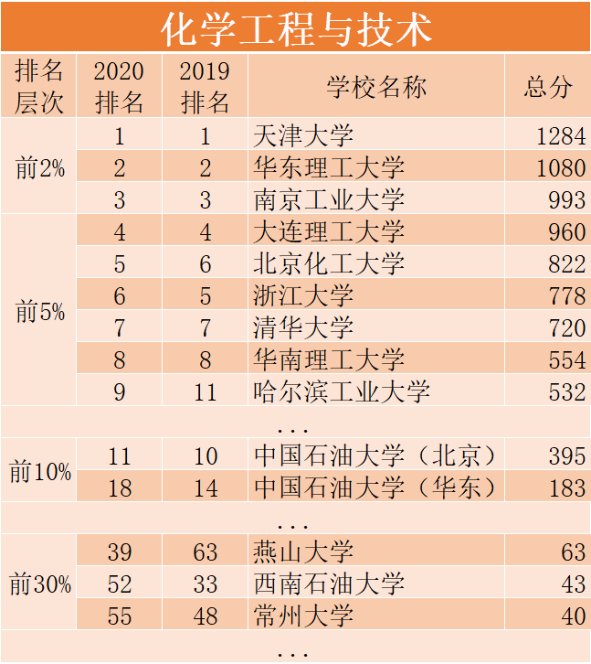 前5%中有大连理工大学、北京化工大学、浙江大学、清华大学、华南理工大学、哈尔滨工业大学。