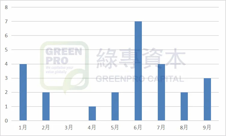 从上市时间来看,前3季度中6月最为活跃,有7家中国公司在这个月上市,其次是,1月和7月,各有4家公司上市。