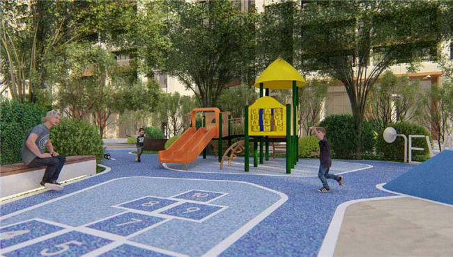 童年对于每个人来说都是非常短暂的,孩子需要一个丰富多彩的童年。中梁·西江首府考虑到不同年龄段儿童的成长需求,以此设计不同主题游乐设施及空间,打造约240㎡的儿童乐园,让每个孩子都能在这里找到乐趣。在柔软的彩色塑胶和沙坑场地里,0-2岁的梁宝宝们可以探索这个神奇的新世界;园林利用坡地地势刻意设计有一定坡度的攀爬斜坡,3-6岁的梁宝宝们可以在攀爬区里能自由、自主的尽情探索新玩法;6-12岁的梁宝宝们调皮闹腾,乐于结交新朋,在摇摇乐、跷跷板、滑滑梯、迷你山丘、攀爬区等一起玩耍,收获欢乐、收获友谊、收获成长。孩子们在阳光下奔跑,亲近泥土和芳香,发挥创造力和想象力,开展自我的交际能力,家长们可以在休憩座椅上看着他们可爱的身影,一起感受温情时光。