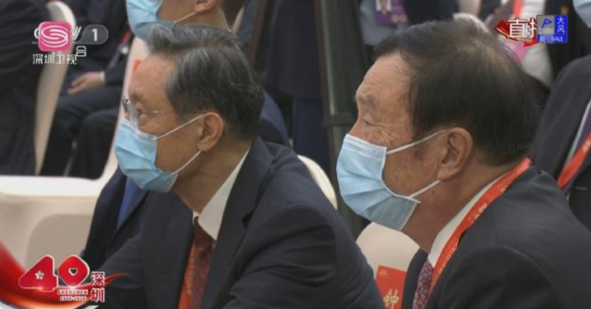 同样不在名单中的还有任正非,但在庆祝大会的直播镜头中我们依旧可以看到这位熟面孔,且给予多次特写,他与钟南山一起,位列第一排。