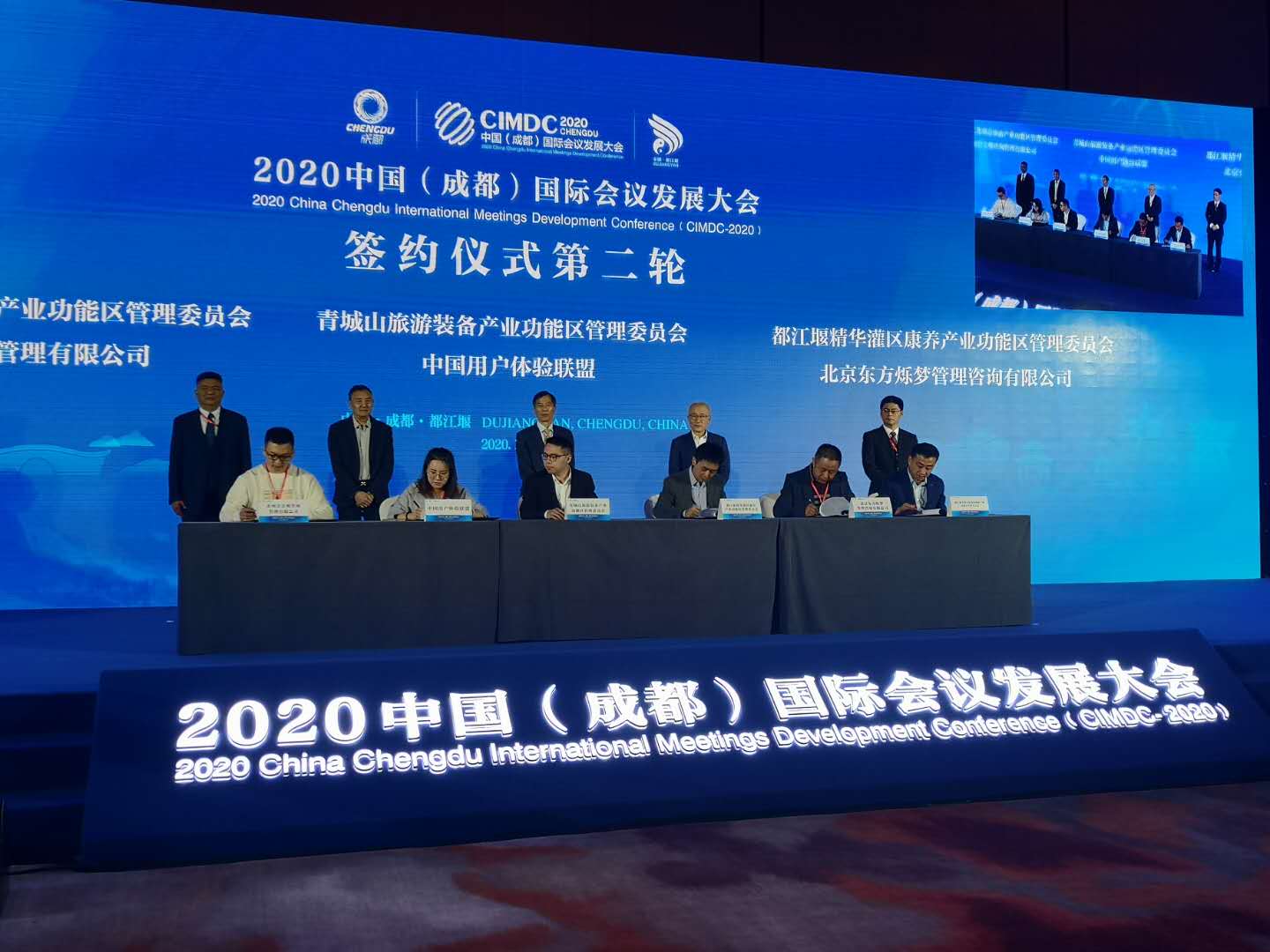 自2019年中国(成都)国际会议发展大会永久落户都江堰市后,10月16日,2020中国(成都)国际会议发展大会在都江堰融创国际会议中心举办,共有来自北京上海地区会议组织者、业界专家及学者、成都及都江堰供应商代表等300余位业内精英出席,都江堰市政府副市长陈捷代表中共都江堰市委、都江堰市人民政府致欢迎辞。精华灌区康养产业功能区筹备组副组长向征出席大会,并与北京东方烁梦管理咨询有限公司签订战略合作协议。