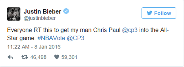 克里斯·保罗(Chris Paul)——贾斯汀·比伯助选拉票