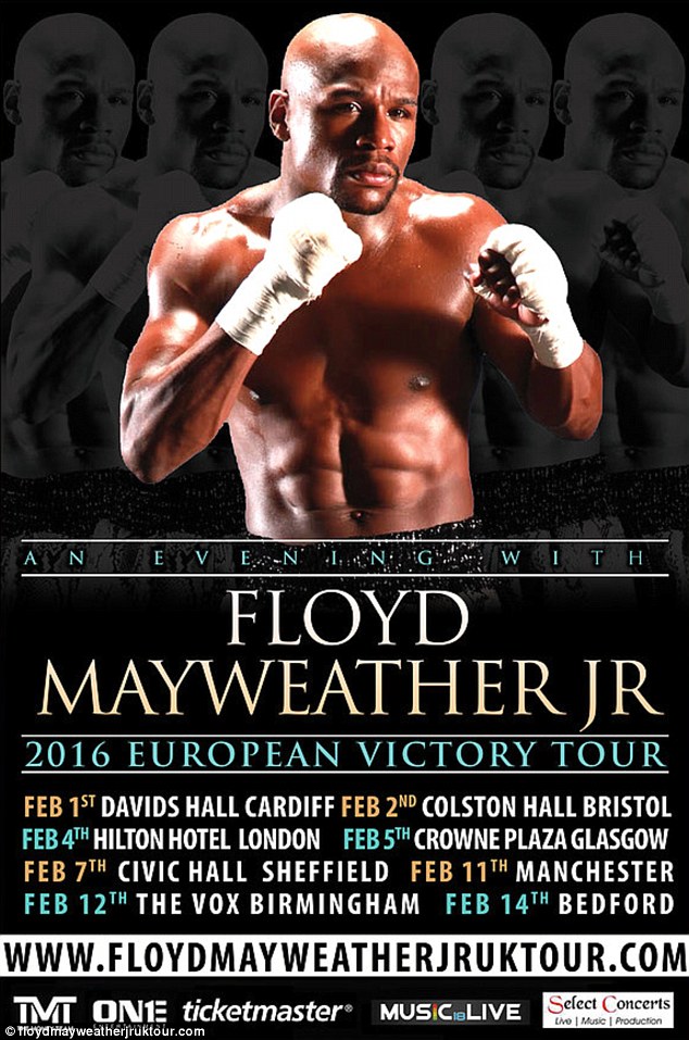 在下月于卡迪夫开始的为期两周的“欧洲胜利巡游”中,梅威瑟将出现在英国的八个城市中。