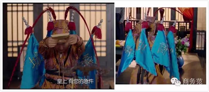 范主看到这个图片的时候惊呆了,太子后面背的是什么鬼?难道随时出差,需要背一个便携式晾衣架? 导演站出来科普了:这个是战旗,有身份的人才能背的。