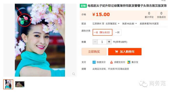 某宝已经说明了一切,只要15元,就可以拥有妃子同款塑料、橡皮泥、山寨金做成的发卡,亲们还在等什么?