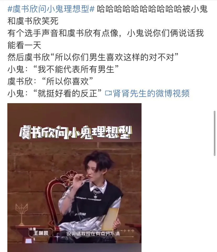 虞书欣、小鬼两人的互动更是笑点频出。小鬼调侃选手秋蒂和虞书欣性格相似,欣欣子调皮回答“所以你们男生喜欢这样的?”,问得对方语言苍白、不知所措。场面带感,嗑到了的观众笑瘫屏幕前。