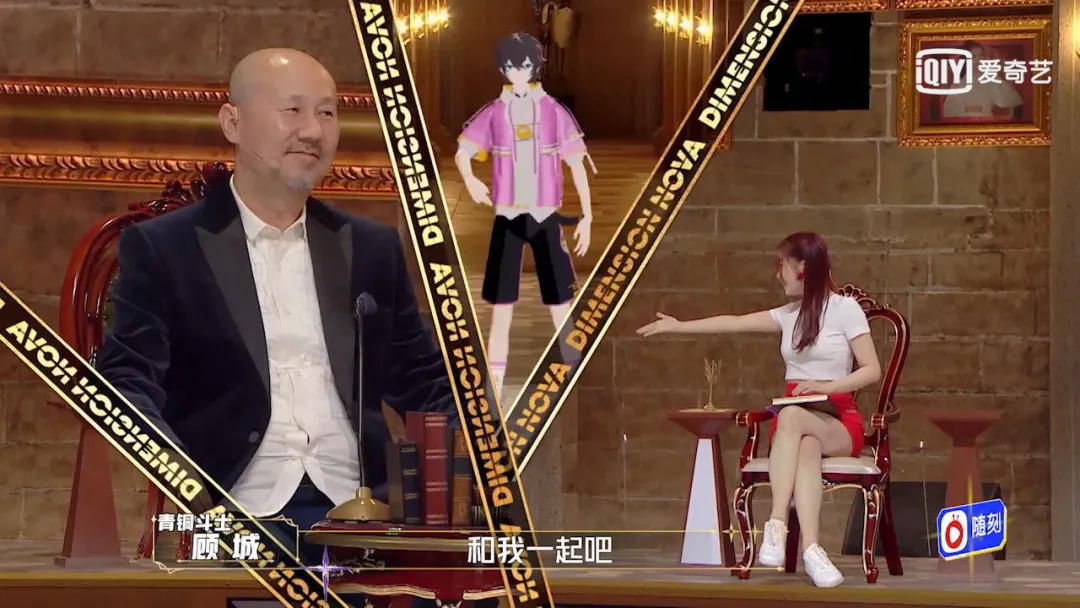 兴奋、好奇、努力理解……这完全就是观众追综的心理写照嘛。在欣欣子、顾城的热情邀请下,腾爷爷在现场娇羞地跳起《YES!OK!》,逐渐主动参与起话题交流。显然,圈外受众需要短暂的适应期。可一旦主动理解虚拟偶像,便很容易被吸引进来。