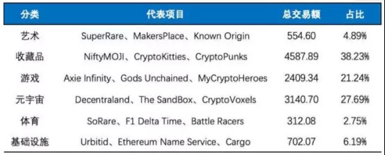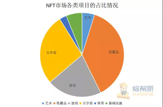 NFT领域各类项目的市场占比情况(资料源自:NonFungible、OKEx Research)