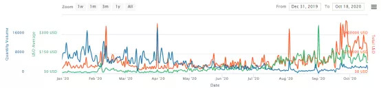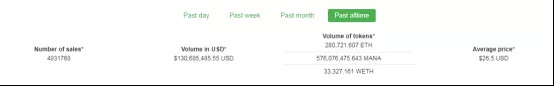 当前NFT市场交易总量及成交均价的数据(数据源自:nonfungible.com;截止时间:2020年10月17日)