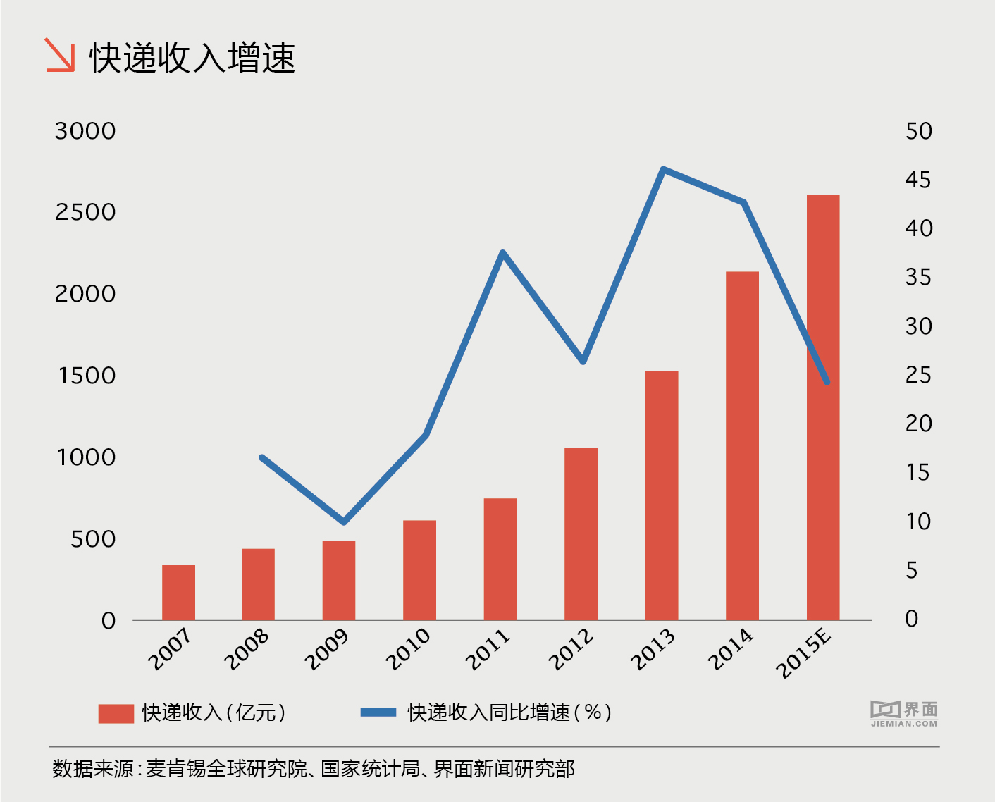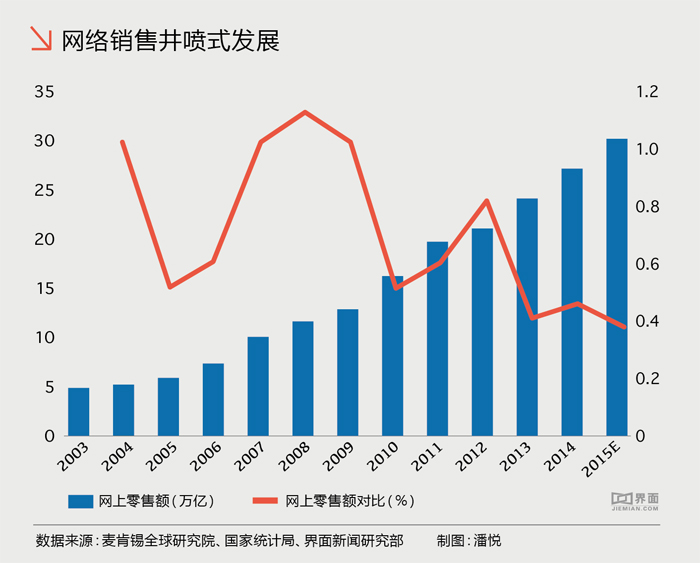 但是大多数人只看到了网购以及快递行业的朝气蓬勃,却忽略了近5年的高速发展带来的行业瓶颈问题。上图显示,在快速增长的背后却是2014年以来的增速快速下滑。2015年度快递行业收入增速从2014年的40%快速下滑至2015年度的24%,其主要的原因是网购热情的冷却。已经举办了7年的淘宝双十一俨然成为线上线下商家买家狂欢的盛宴,但近两年也因货品质量、快递后遗症以及营销手段等倍受诟病。冰冻三尺非一日之寒,网购的诸多问题反应在快递行业上也是一系列数据的下滑。