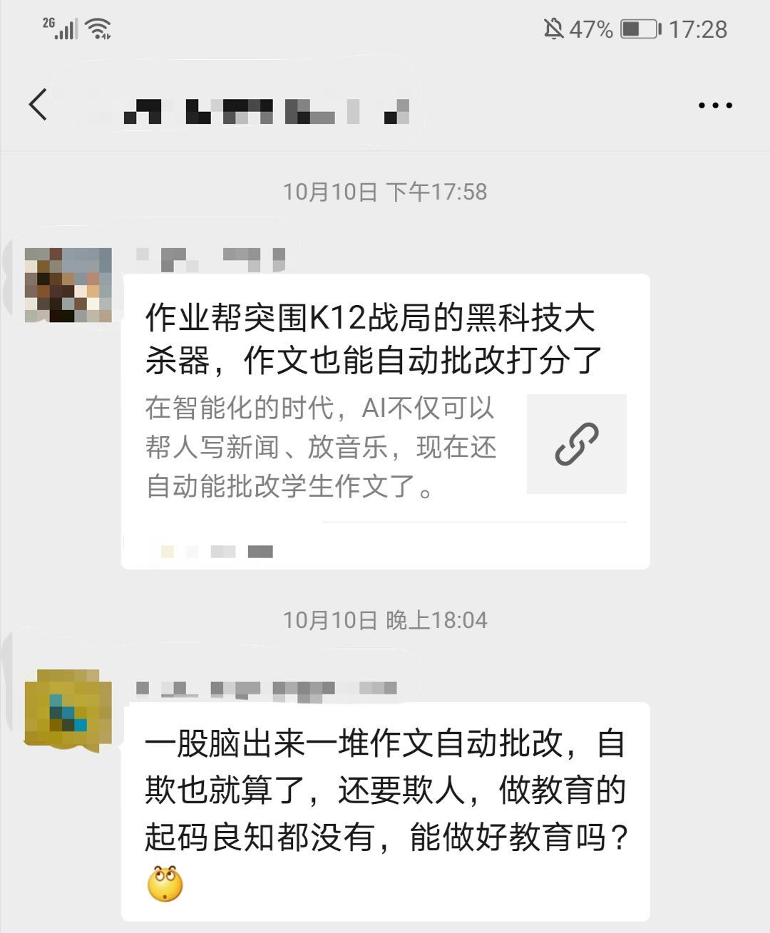 最近,一则关于“作业帮公布了一项‘一种作文自动批改及评分的方法及终端’专利”的消息被发到微信群里。随后便在教育圈引发热议,某教育群内,甚至有业内人士直言:一股脑出来一堆作文智能批改,自欺也就算了,还要欺人,做教育的起码良知都没有,能做好教育吗?