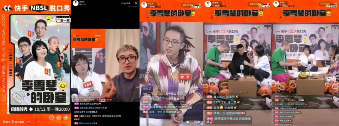几天前的12日,快手又推出喜剧直播秀节目《NBSL脱口秀》,第一集主题为“李雪琴的卧室”,由《脱口秀大会3》上表现惊艳的李雪琴做主咖,池子、教主刘旸、梁龙等人作为嘉宾助力,节目获多方关注,或可发展为平台王牌综艺。